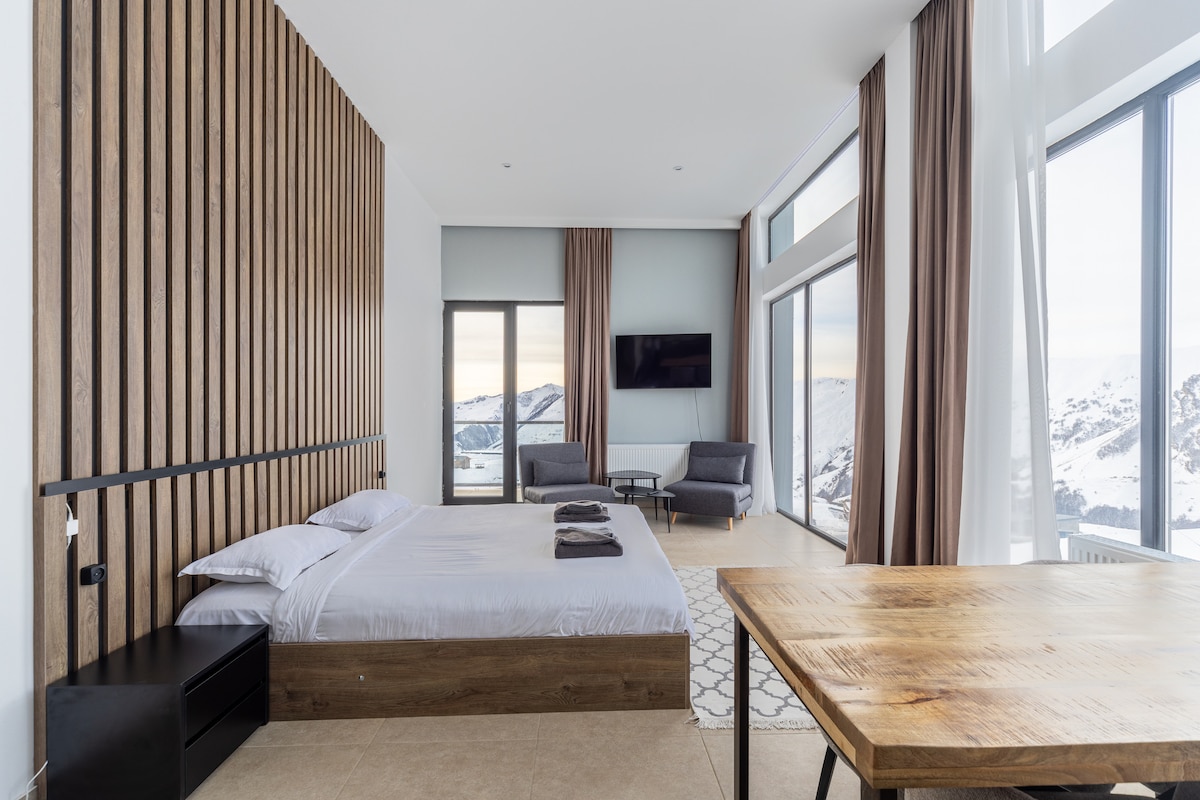 Enjoy a stylish stay in Gudauri’s top ski area! This private room in a 4-star hotel offers: Comfortable bed & en-suite bathroom Free breakfast Swimming pool access Steps from ski lifts, shops & cafes Perfect for a relaxing mountain getaway!