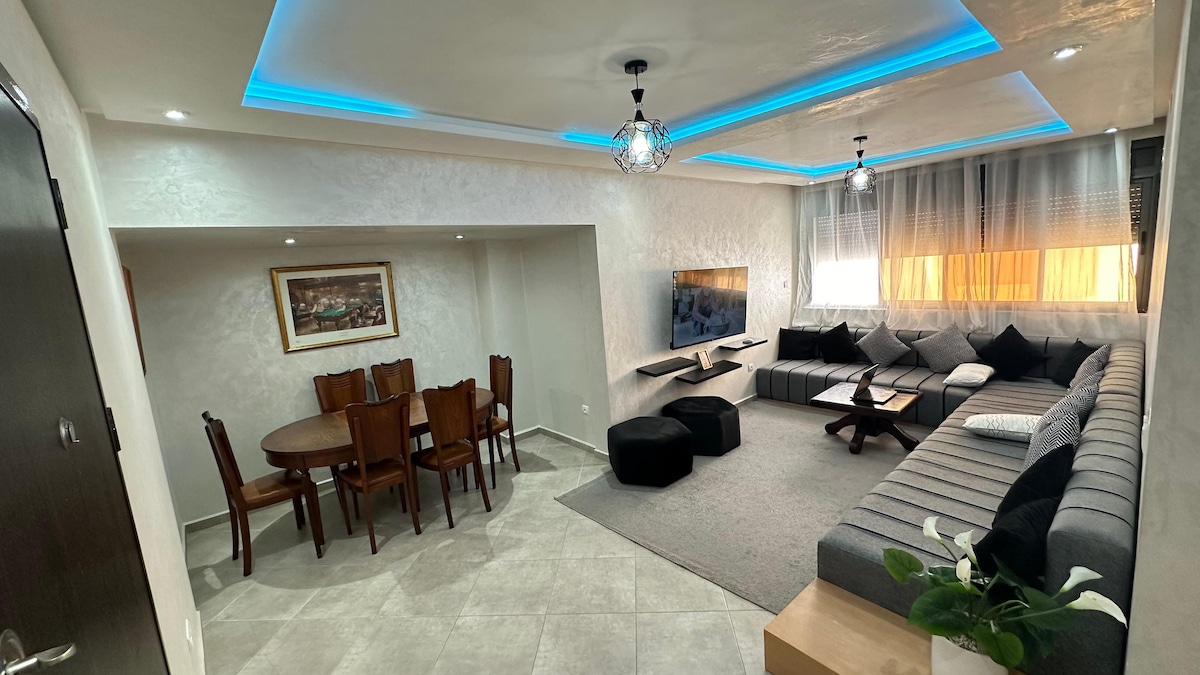Odkrijte udobje in razkošje v tem prostornem stanovanju v osrčju Agadirja. Vključuje dve prostorni spalnici, svetlo dnevno sobo in elegantno jedilnico, ki je idealna za družine ali majhne skupine. Stanovanje je blizu Carrefoura, McDonald's, različnih restavracij in slavnega Souk El Had za edinstveno nakupovalno doživetje. Čudovita plaža Agadir je le nekaj minut stran, zaradi česar je to stanovanje odlična izbira za vaše bivanje