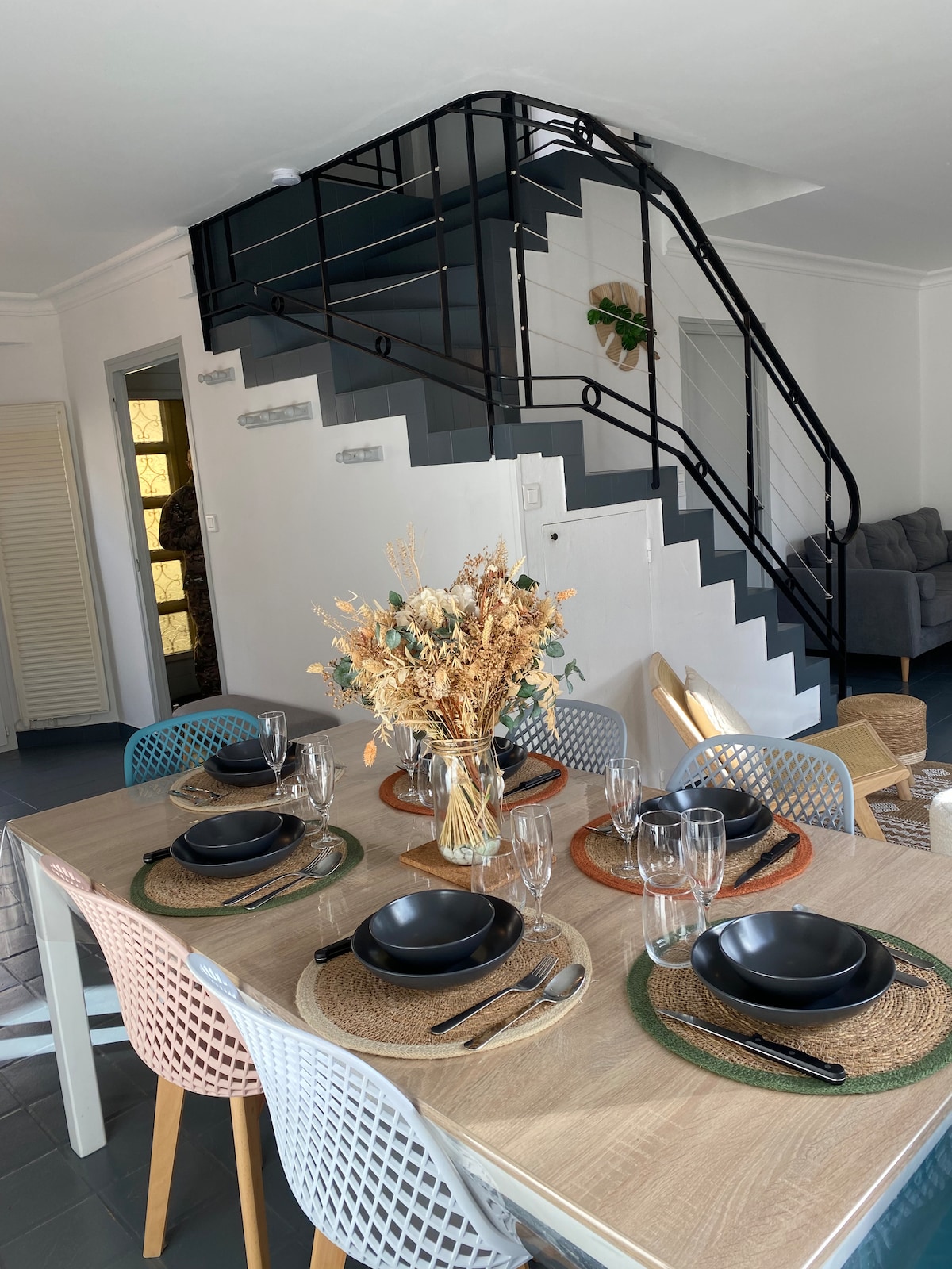 Cette grande maison est toute rénovée depuis juillet 2023 et parfaitement équipée pour accueillir une famille de 4 personnes . Un salon confortable avec une TV (décodeur orange ) et FIBRE très haut débit ,des jeux pour les enfants et tout le confort moderne d'une cuisine équipée . Grand lit king size . Grand dressing dans la 2e chambre. Belle salle de bains avec douche. Grand jardin avec salon de jardin et table de jardin , parfaitement sécurisé pour les enfants .Proche tous commerces .