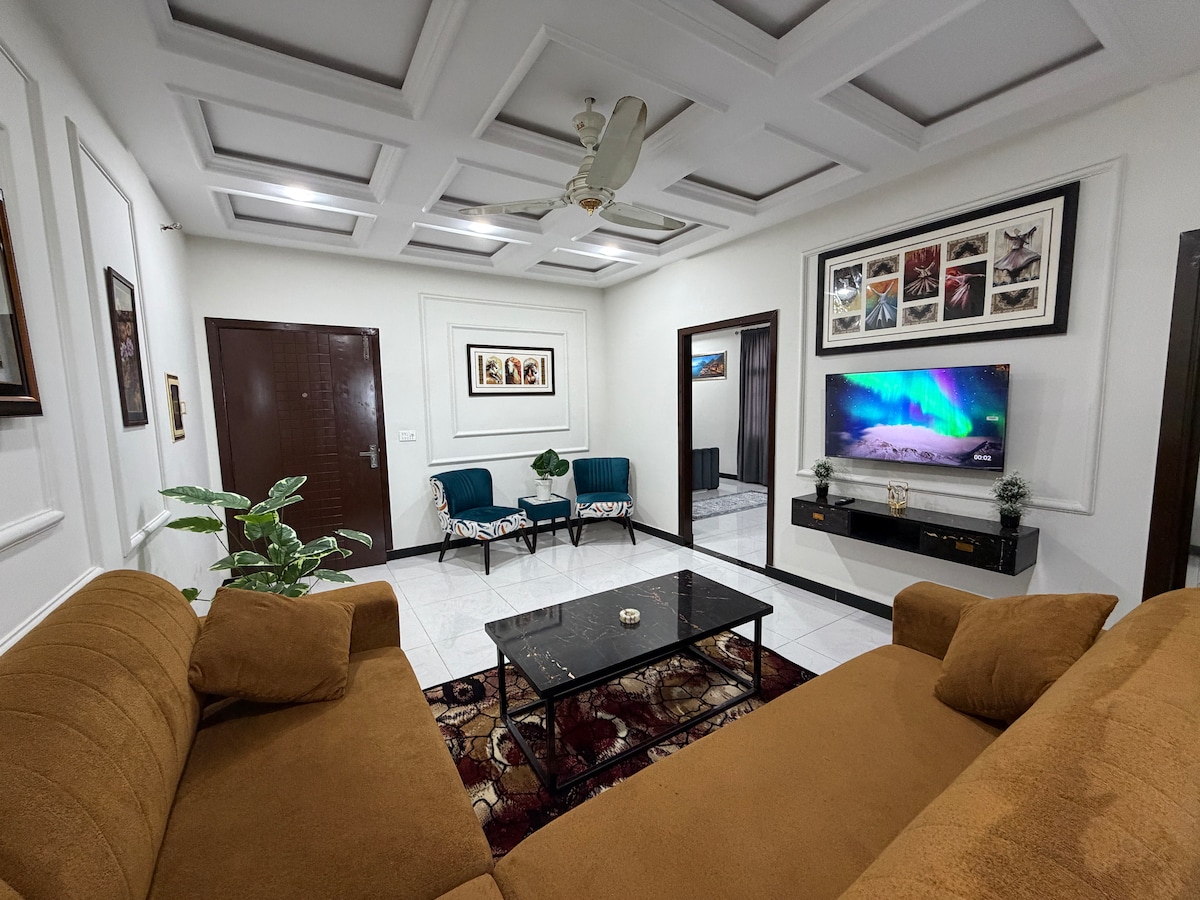 This inviting apartment exudes tranquility, creating a peaceful haven for families. Its warm ambiance embraces you upon entry, instantly fostering a sense of home. Thoughtfully designed, it radiates a family-friendly atmosphere, making it an ideal retreat for shared moments and lasting memories. Relax with the whole family at this peaceful place to stay. Additional services: A visit can be arranged on demand, 1) Gurdwara Rori Sahib Emanabad 2) Opera Cinema Citi Housing Gujranwala
