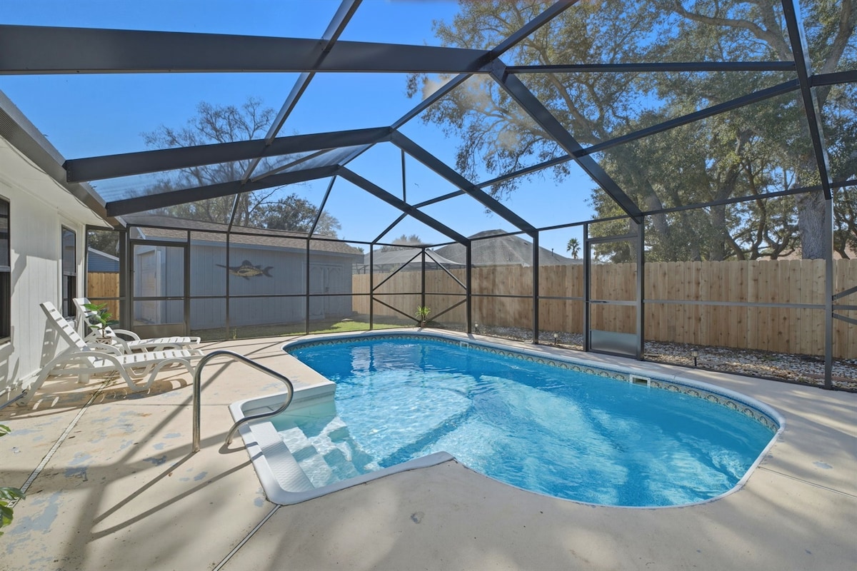 Dobrodošli v Paradise z BAZENOM. Primerno za otroke. Zdaj, ko smo oddali prenočišče v zakup, morate upoštevati dve glavni stvari: 1) Živimo v zgornjem nadstropju in slišali boste korake najinih otrok. (7:00 - 8:00). Ni pritožb glede glasov. 2) naš bazen ni ogrevan. Uživajte v zvočnem dostopu DO plaže čez cesto. Najboljši sončni zahodi na plaži! Mehiški zaliv je oddaljen 5 ulic. Zasebni lanai z žarom in dostopom do bazena. Vstopite pod stopniščem v svoj edinstveni zasebni apartma z 2 spalnicama in 1 kopalnico. Ključavnica s tipkovnico na vratih.