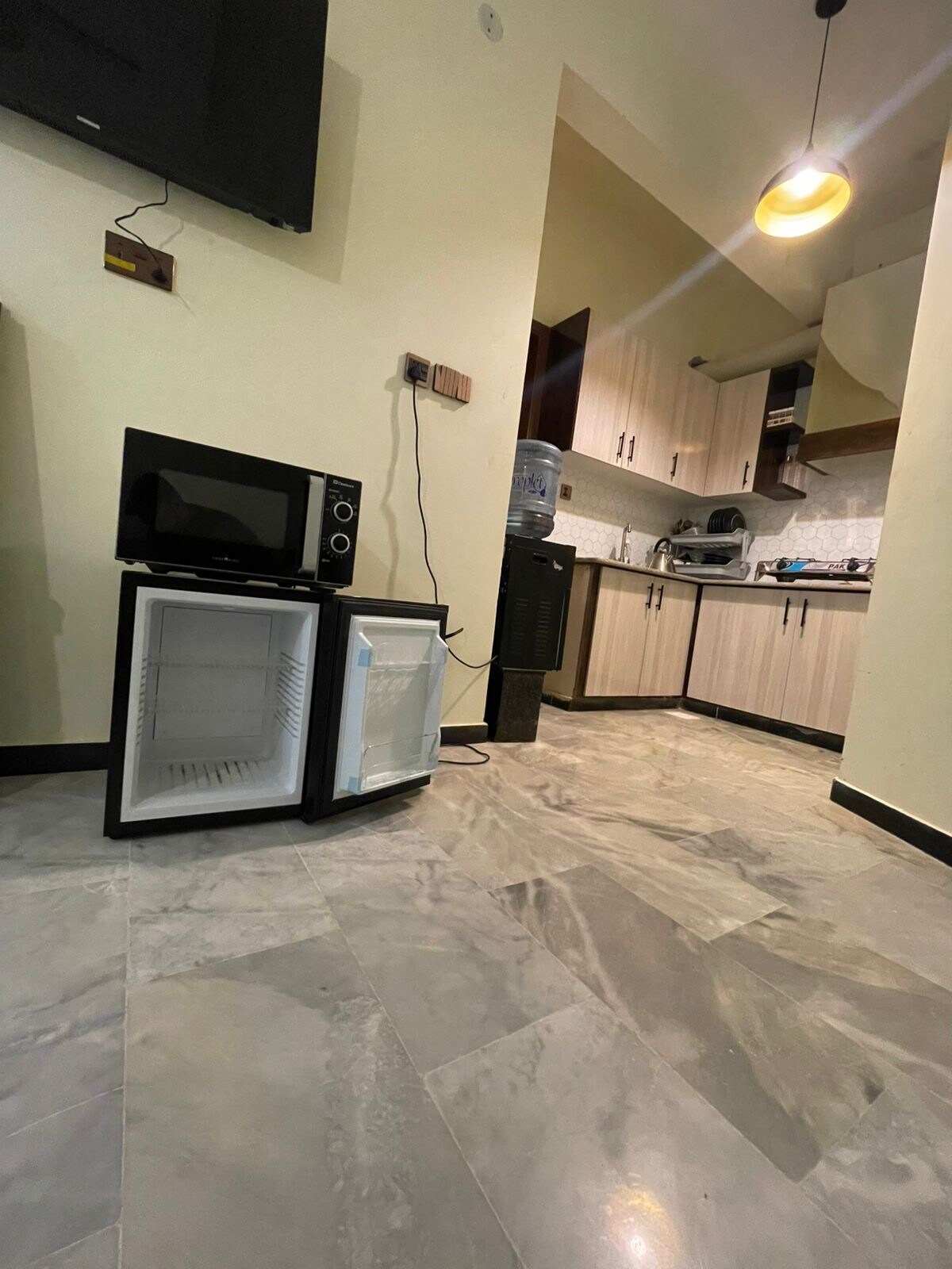 Odkrijte eleganten, minimalistični studio v 6. fazi DHA, ki je zasnovan za udobje in priročnost. V klimatizirani spalnici je zakonska postelja za miren spanec, v dnevnem prostoru pa so na voljo raztegljiv kavč, stoječa svetilka in ogledalo v polni dolžini. Ostanite povezani z visokohitrostnim Wi-Fi-jem, uživajte v zabavi na televizorju visoke ločljivosti in izkoristite kompaktno kuhinjsko nišo z osnovnimi napravami. Studio se nahaja v bližini najboljših restavracij, kavarn in nakupovalnega središča ter je odlično izhodišče za vaš obisk Karačija.