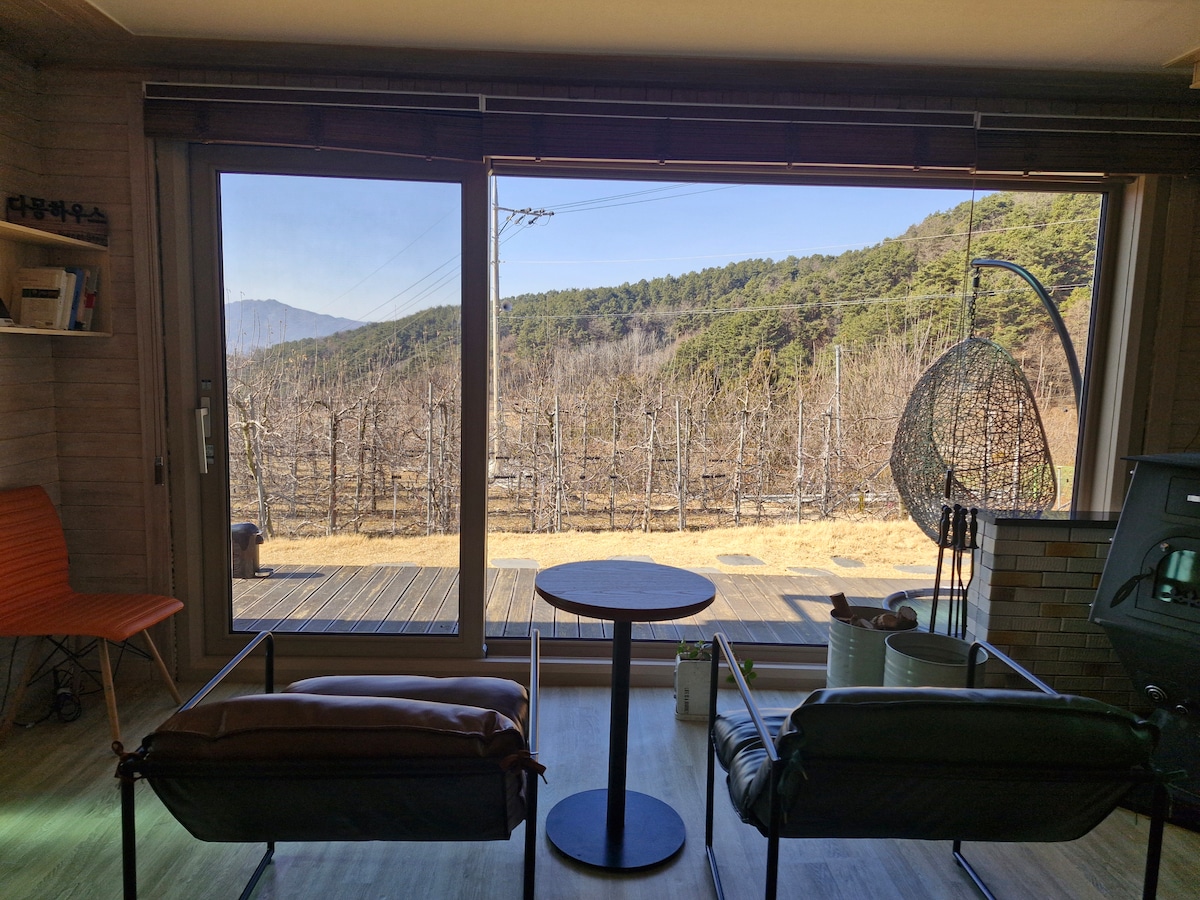 Pozdravljeni. Predstavljamo vam miren in udoben vrt ob jezeru. # Lokacija Gre za podeželsko hišo, ki se nahaja pred rezervoarjem z dobrim zrakom v gori Cheongdo Bisul. # Oprema Na voljo sta bazen (v vseh letnih časih) in žar. # Funkcije Dan lahko preživite v skrbno obdelani hiški na deželi, ki vključuje veliko trato, kokošnjak in vrt. To je vrt ob jezeru, kjer lahko začutite prijeten počitek stran od mestnega vrveža.