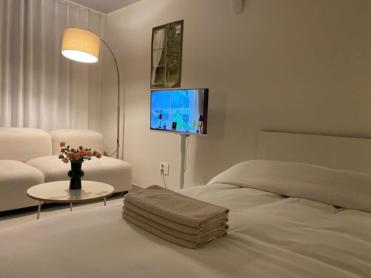 중심부에 자리하여숙소 설명 ✅꼭 필독✅해 주시고 이용해 주세요!! ♥️"잠자리"라는 기본에 가장 충실하려고 "노력"한 공간입니다! ✅숙소 옵션✅ -삼성 스마트 TV -초고속 wifi지원 -삼성 시스템 에어컨 -삼성 스타일러 -드럼 세탁기 -일리 커피머신기(캡슐제공) -커피 포트기 -토스트기 ✅숙소 주방 옵셔✅ -인덕션 2구 -머그잔/와인잔/소주잔 -앞 접시 / 중 접시 -냄비 2개 (중,대) -조리도구(국자,도마,칼,가위) -수저셋트 (4인 인준) 🙏저희 숙소는 간단한 조리만 가능 하세여 참고해 주세여! ✅화장실/샤워실 옵션✅ -핸드위시 -폼클랜징 , 클랜징 오일 -샴프/컨디셔너/바디워시 -바디로션 -화장솜 , 면봉 -헤어드라이기, 고데기 입지적 편리함과 세련된 스타일을 모두 갖춘 공간입니다.