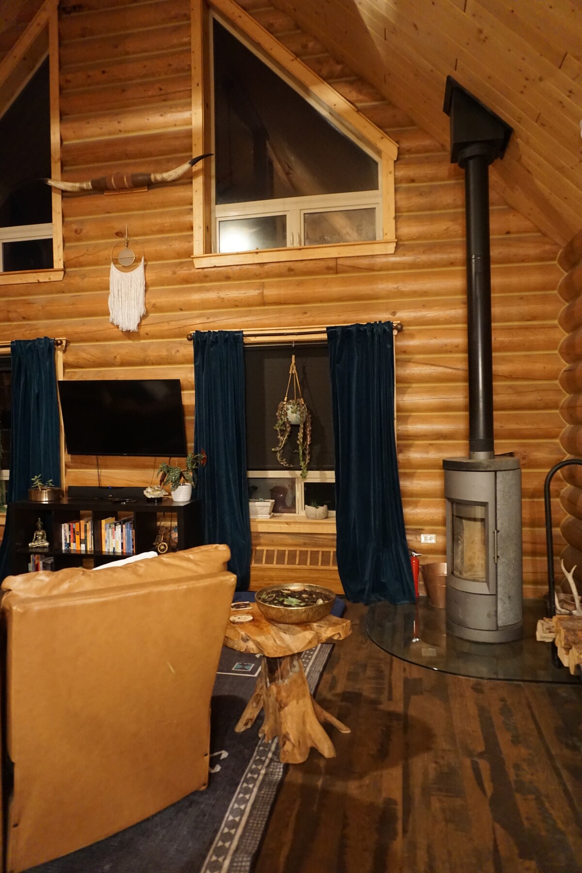 Grown-Up Getaway Adventurers' 2 Season River Cabin! 1-4-persons, charming, Boho, rustic Log Studio stocked with organic breakfast choices, snacks. Secluded, safe. Perfect for single's trip, romantic escape, sports, work/study. Nestled in surrounding, old spruce trees, along a mountain river in heart of Rockies. Peaceful, river sounds lull you to sleep. *NOT for those seeking the conventional. This is Real Rustic, Creative Cabin West.*Hosts on-site to answer recreation, events, dining questions.