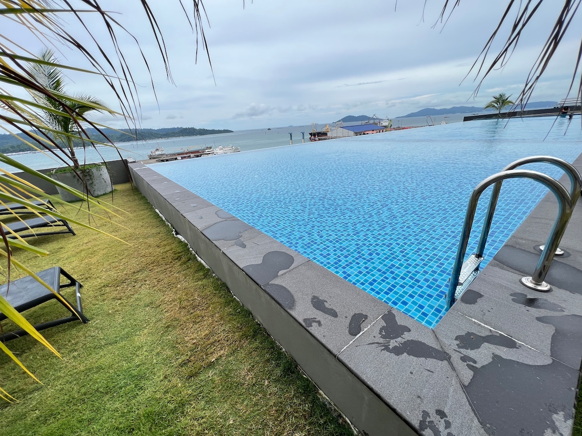 Novo stanovanje se nahaja v CBD-ju in ob morskem zalivu. Uživajte v pogledu na morje, obkroženi z otoki v naši visoki nadstropni enoti. Do pomola Jetty se lahko sprehodite peš; v bližini sta mednarodni kongresni center SABAH, (Duty Free) nakupovalno središče Jesselton in nakupovalno središče Suria Sabah. Naša nastanitev Homesuite je čista s pogostim razkuževanjem. Družinam prijazno in primerno tudi za pare in poslovna potovanja.