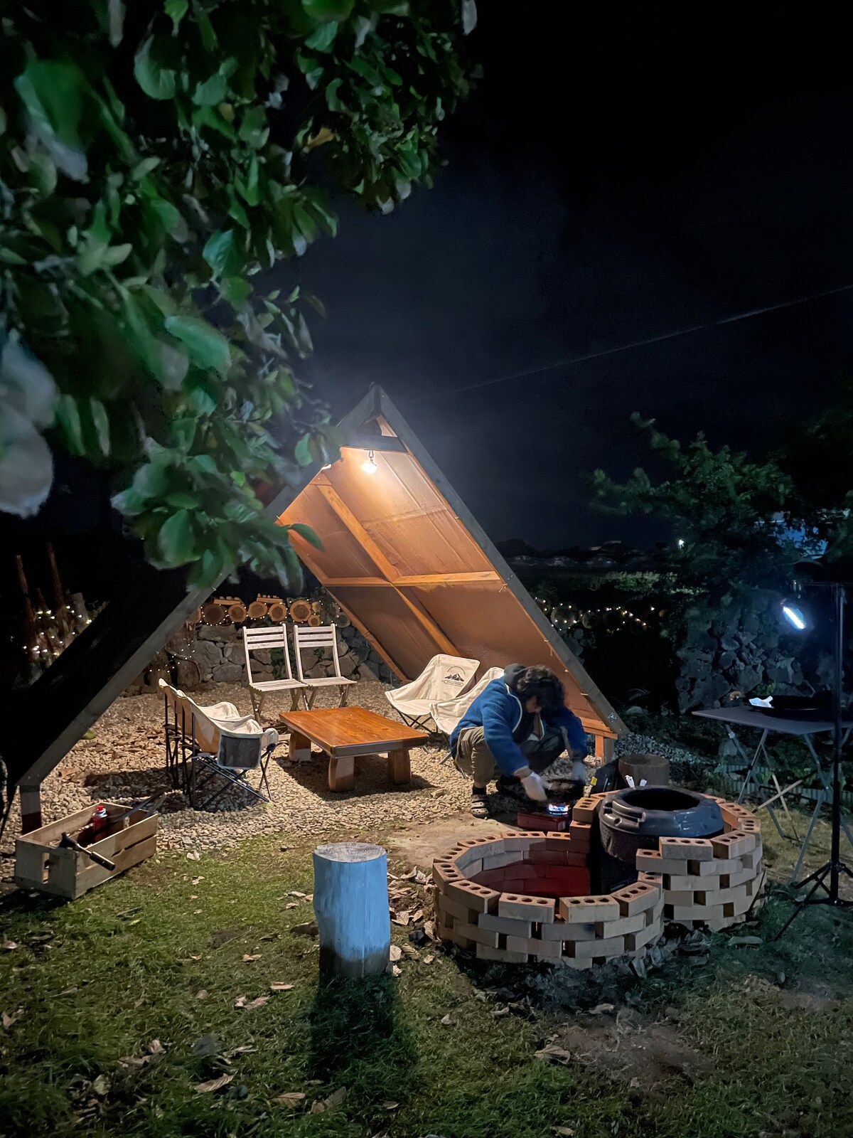 노을 예쁜 곽지마을 숙소_솥뚜껑 바비큐 불멍이 가능한 힐링촌캉스_편안한 침구류 에이스침대