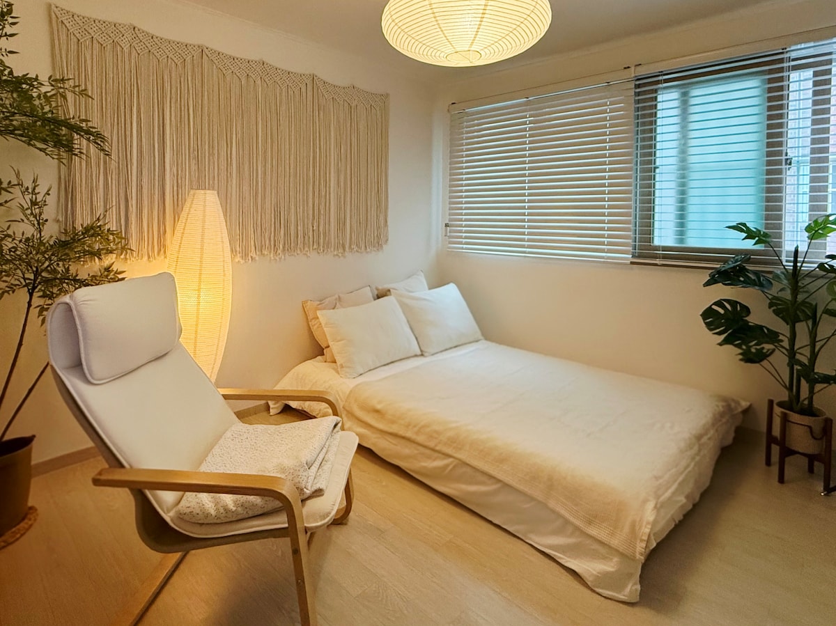 Pozdravljeni, to je prenočišče v odtenku. 🏠Posebnosti namestitve - 5 minut hoje od postaje Children's Grand Park - 10 minut hoje od univerzitetne postaje Konkuk - 15 minut vožnje z avtobusom ali podzemno železnico od postaje Seongsu V bližini nastanitve, ulice Konkuk University Flavor Street, tržnice Hwayang itd. Ima vso opremo, kot so turizem, nakupovanje in restavracije. Vendar pa se nastanitev nahaja v mirni in varni ulici. To je udobna nastanitev, kjer se lahko sprostite. Dandanes je to najbolj vroča destinacija v Seulu. Blizu univerzitetne postaje Konkuk in postaje Seongsu Izkusite lahko mlado in trendovsko korejsko kulturo. 🌿Lokacija Subway Lines 2, 7 Konkuk University Station Ali v bližini postaje Children's Grand Park, Cesta ni zapletena, zato jo je enostavno najti. Podzemna železnica in avtobusne linije dobro delujejo. Gangnam/Hongdae/Jamsil/Samsung/COEX Dostopno brez prenosov. 🔑Prihod IN odhod - 16.00: - Čas odhoda: 11.00 Prijava je brezkontaktna. Zaradi varnosti okoli 12. ure na dan prihoda Poslali vam bomo kodo za ključavnico s tipkovnico na vhodnih vratih.