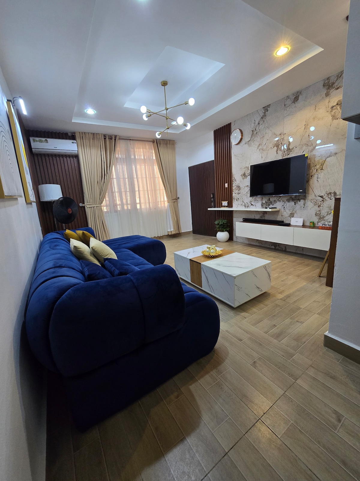 Bedroom Basketball Hop Private Balcony Fibre Optic Wi-Fi Washing Machine Furnished Living Room Fully Equipped Kitchen 2 Toilets and 1 Bathroom PlayStation 5 (FiFA,Hit Man, MK) Proximity to Restaurants and Stores Clean and Fresh Bedding and Towels 2 Air-Conditioners on Solar&Inverter Excellent Customer Service and Support Door with Passcode and Camera at Entry 65 & 55 Smart TV (Prime, Netflix, and DSTV) Serene, Secure, and Beautiful Neighborhood 24/7 Electricity(Solar, Inverter and Generator)