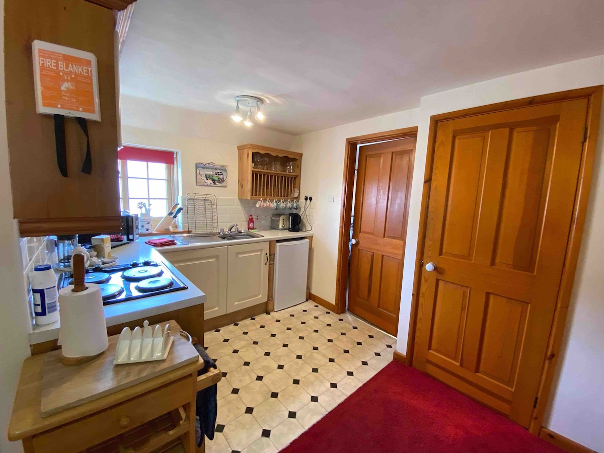 Udobna luksuzna garsonjera za dva na robu vasi z zasebnim sončnim dvoriščem, zelenim vrtom, zakonsko posteljo iz spominske pene, kopalnico z električno prho in celotno kuhinjo z; ventilatorsko pečico, 4 obročno keramično kuhalno ploščo, ekstraktorjem, mikrovalovno pečico in pralnim/sušilnim strojem. Brezplačni Wi-Fi in pametni Freesat TV z DVD predvajalnikom. Električni kamin, kavč. Manj kot 10 minut hoje navzdol po hribu do obale in vasi s plažo in vsebinami. Mir, tišina in zasebnost. Zasebno parkirišče in prostor za obračanje.