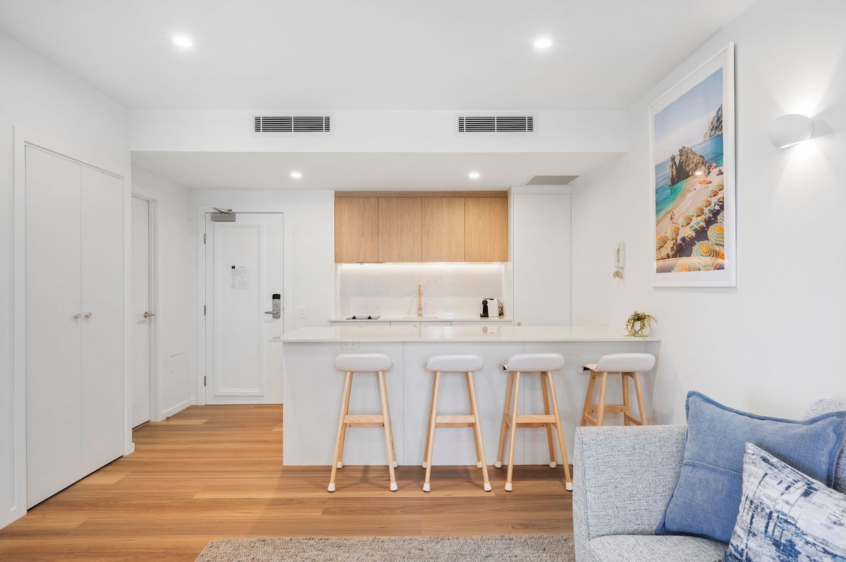 Naša stanovanja z eno spalnico v ulici Hastings Street nudijo spalnico z razkošno zakonsko posteljo (ločeni postelji sta na voljo na zahtevo) in odprtim bivalnim prostorom (z doplačilom uporabite raztegljiv kavč). Stanovanja se ponašajo z dobro opremljeno kuhinjsko nišo in jedilnico ter ločeno kopalnico, v kateri boste našli prho, sušilnik za lase in razkošne izdelke za nego kože in las Appelles. Uživajte v zasebnem balkonu in uživajte v lokalnih kuhinjah tako, da uporabite zasebni balkon z žarom ali pa se sprehodite do znane restavracije in vinskega bara Sails ali pa izbirate med eno od številnih znanih restavracij na ulici Hastings, ki so oddaljene peš. Vključeni so vsi posebni detajli, ki bi jih pričakovali od luksuznega letovišča Noosa, kot so bazen ob plaži, brezplačen Wi-Fi, Netflix in Kayo ter dnevne storitve.