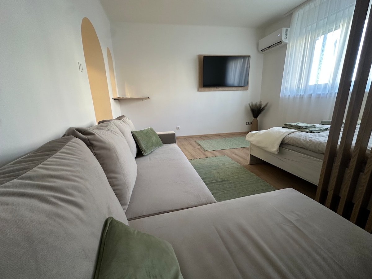 Várlak szeretettel minimalista, saját kézzel berendezett és kivitelezett lakásomban, ami nem túl nagy, de nem is kicsi. Az ágymatrac rendkívül jó minőségű. A lakás nem a főútra néz, ezért csendesebb, mint egy átlagos városi lakás. Hátul található egy kis park ahova ki tud ülni az ember. A ház másik oldalán pedig található egy közösségi park, kosárlabda, valamint street work out pályával. A belváros gyalog nagyjából 10 percre található.