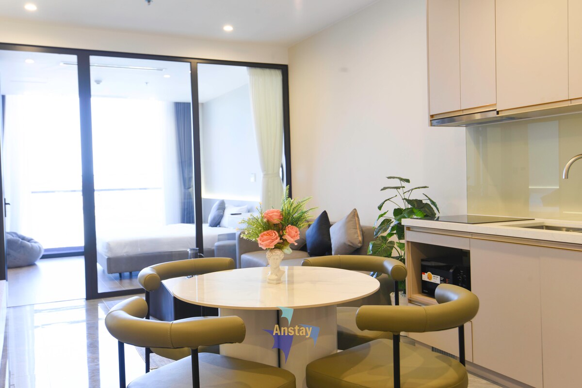 To je čudovito stanovanje, ki se nahaja v stavbi A La Carte Ha Long, najvišji stavbi, ki se nahaja tik ob plaži. Idealen kraj za sprostitev s pogledom na morje. Produktivna delovna površina z mizo, omrežjem Wi-Fi in vso opremo v stanovanju. Priročno lahko dosežete naslednje lokacije: • 1 minuto hoje do plaže. • 5 minut vožnje do nočne tržnice. • 10 minut vožnje do središča mesta, muzeja Quang Ninh... Cena sobe ne vključuje stroškov za zajtrk, bazen ali telovadnico.