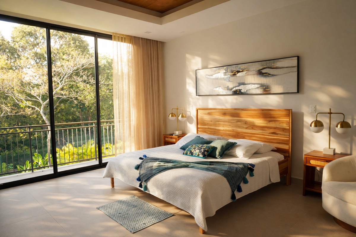 Dobrodošli v Maitriju, vašem udobnem oddihu. Ta vila z 2 spalnicama in 3 kopalnicami je zasnovana za udobje in sprostitev. Nahaja se le 8 minut hoje od plaže in ponuja popolno mešanico miru in pustolovščin. Ostanite povezani z 2-kratnim hitrim internetom. Uživajte v ekskluzivnem hišnem upravitelju in dostopu do kluba Langosta Beach Club, ki je vključen v vaše bivanje. Nahajamo se v središču Tamarinda, poleg nočne tržnice Tamarindo. 1 uro od letališča Liberija (letališče Liberija) in 4 ure vožnje z avtomobilom od letališča SJO (letališče San Jose).