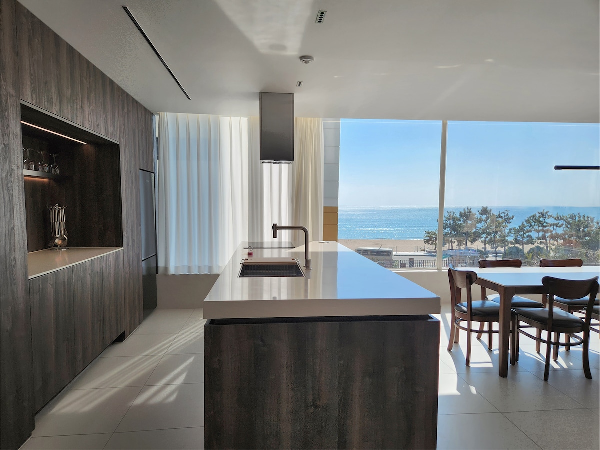 Ko ✨️ odprete okno v dnevni sobi, vas popelje naravnost na teraso, kjer lahko uživate v pogledu na morje. Če počivate na kavču, odprete okno in greste ven, Morje lahko občutite že na terasi. Ne gre samo za razgled skozi okno. Lahko greste ven in uživate sami. Dve zakonski postelji (Queen) in ena zakonska postelja (King), prostor za sprostitev in kopalnica Odlično je bivati pri družini in prijateljih. Na terasi se lahko odlično sprostite in uživate v pogledu na ocean, ne da bi vas motil bleščeč odsev Yunseula. Odprite okno in stopite na teraso, da boste takoj uživali v oceanu. Prenočišče je registrirano in se upravlja kot zakonito podjetje za nudenje nastanitev za domačine in tujce v skladu s posebnim primerom urada Haeundae-gu in podjetja Mrment, 🐳Busan.
