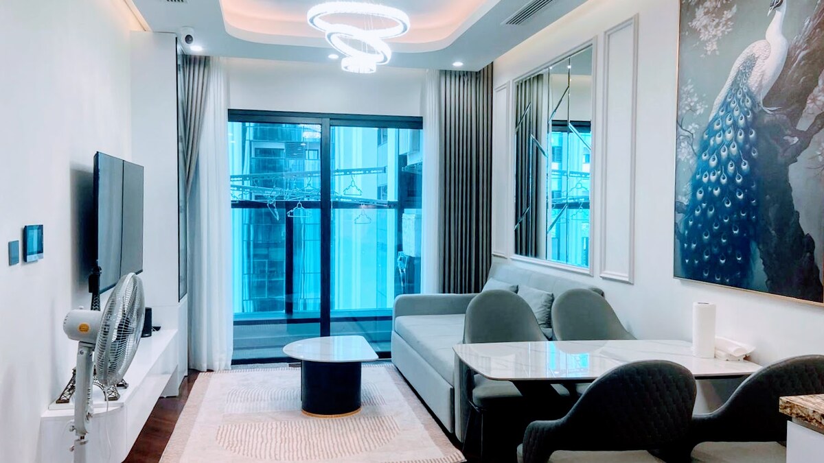 Uživajte v izjemnem bivanju v tem stanovanju F3, ki se nahaja v 21. nadstropju prestižnega stolpa Diamond Crown DOJI v kraju H ¥ i Phòng. Z dvema spalnicama, dnevno sobo in raztegljivim kavčem lahko udobno sprejme do 4 osebe. Imeli boste dostop do bazena, telovadnice v 20. nadstropju in non stop varovanja. V bližini trgovin in taksijev to stanovanje združuje sodobno udobje z razkošno opremo.
