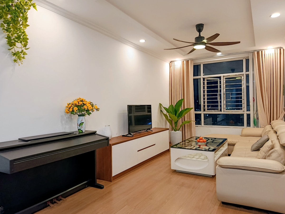 Lovely 94m² flat on the 15th floor with impressive views of the city, include two bedrooms with king and queen beds, making it well-suited for small families or groups. Located in the heart of Da Nang, just minutes from Han River, Dragon Bridge & APEC Park. My Khe Beach only 9 mins away. 🛏️ City centre | Near the beach | Full amenities 🧹 Daily trash removal and towel replacement upon request ★ Free access to shared swimming pool in the summer (May to September) 🛜 High speed Wifi 🎹 Piano