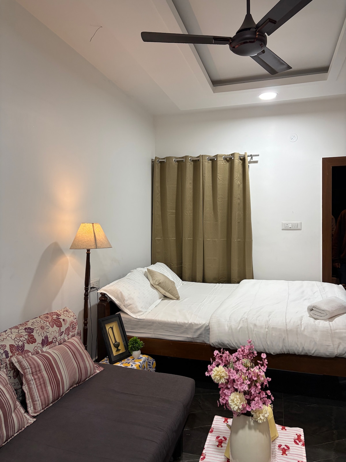 A safe and peaceful stay for families, friends, and solo travelers seeking comfort and relaxation at our cozy homestay. Our home offers a tranquil escape where you can unwind in a warm and friendly atmosphere. Why Stay With Us? Safe & Peaceful | Cozy and Spacious Rooms | Homely Hospitality | Well-Connected Yet Quiet | Fully Equipped Kitchen | Relaxing Ambience Whether you're visiting for a short escape or a long stay, you can enjoy comfort and warmth. We look forward to hosting you!