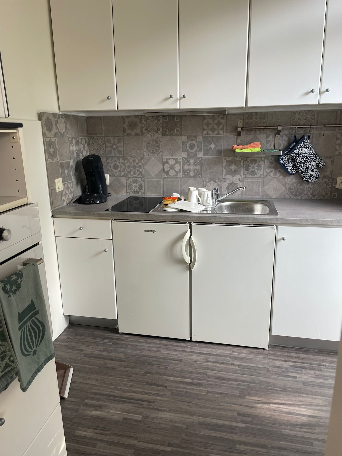 Mirno in svetlo stanovanje v velikosti 130 m2, ki je bilo pred kratkim prenovljeno (2021) in ima visoke stropove, se nahaja v 1. nadstropju. Popolnoma opremljena kuhinja se odpira v veliko jedilnico v kontinuiteti z dnevno sobo, vhodnim hodnikom in delovno sobo. Dvoposteljni zadnji del apartmaja ima 2 čudoviti spalnici, eno z BEKA posteljo, kopalnico s prho in kadjo, ločeno stranišče in majhno opremljeno pralnico. Vintage pohištvo, toplo in prijetno vzdušje