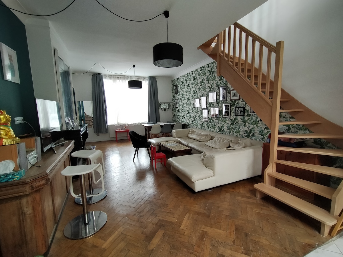 Dvostanovanjsko stanovanje, polno šarma, okusno urejeno, v osrčju starega Lilla: - 10 minut hoje od dveh postaj Lille Flanders in Lille Europe - 10 minut hoje od podzemne železnice Rihour ali podzemne železnice Lille Flandre - 5 minut hoje od trga Grand Place - 1,5 km (20 min hoje) od Zénith de Lille - 12 km od stadiona Grand Stade Pierre Mauroy v Villeneuve-d'Ascq (15 min z avtomobilom ali 40 min s podzemno železnico) - 12 km od letališča Lille-Lesquin Podzemno parkirišče, kolesa V'Lille, avtobus,… vse je v bližini.