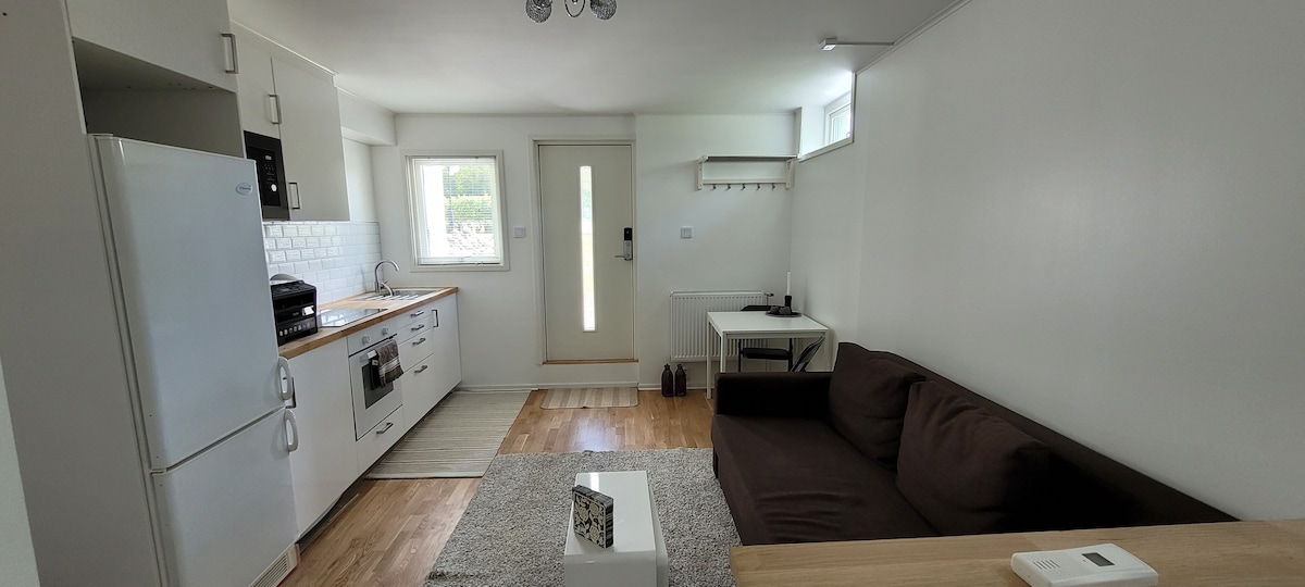 Separate, newly renovated flat with its own entrance, patio and garden. Calm and cosy atmosphere. South-facing garden with comfortable furniture. Parking lot close to the entrance.
