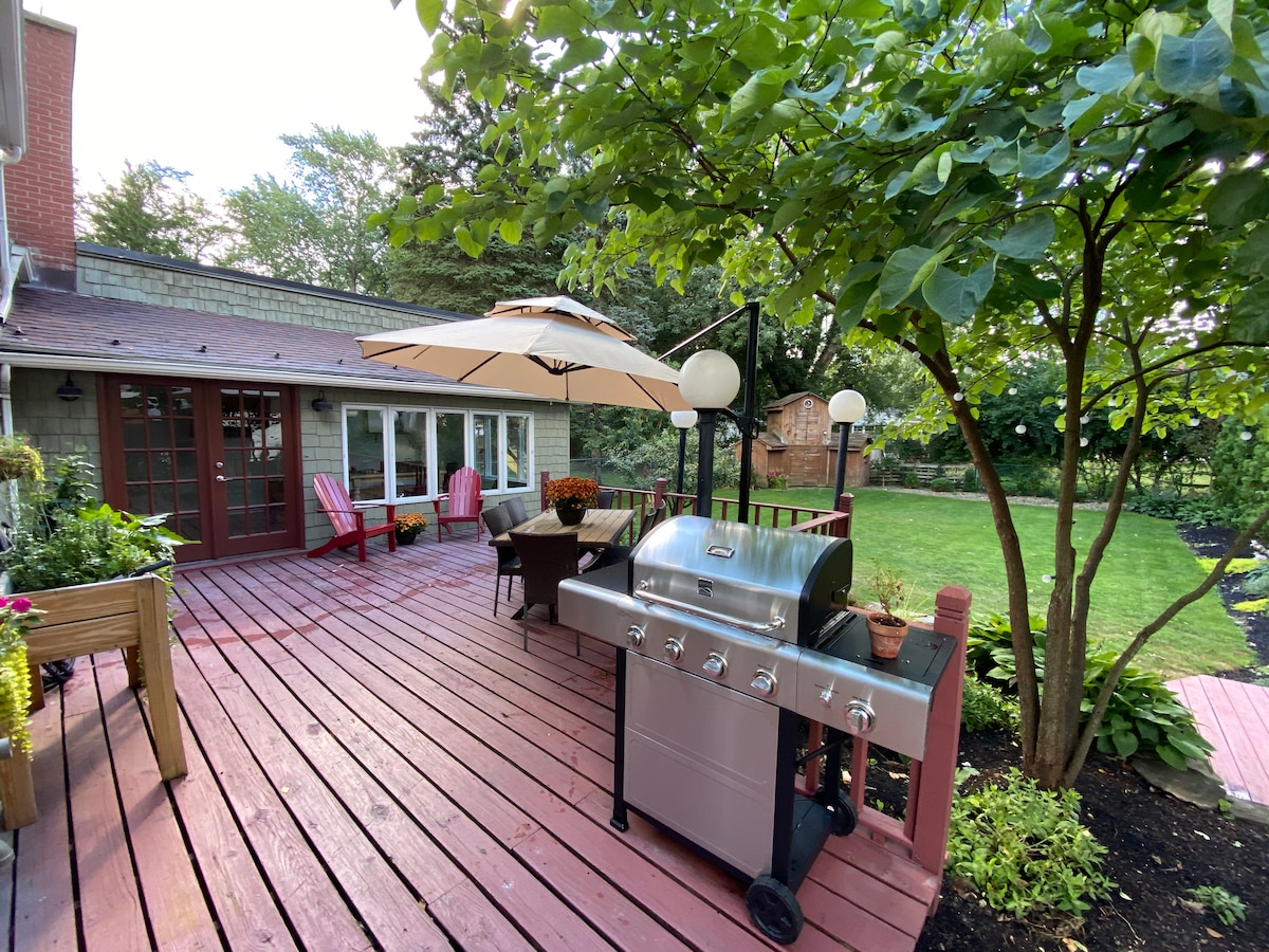 Posodobljeno prenočišče v vasi Hamburg, le nekaj korakov od trgovin in restavracij. Vključuje 3 spalnice, 1,5 kopalnice, popolnoma opremljeno kuhinjo in udobno delovno sobo s kaminom in delovnim prostorom. Uživajte na veliki terasi z žarom. Teniška igrišča čez cesto, igrišče dve ulici stran. Dovoz za 2 avtomobila in parkiranje na ulici. Samo 20 minut do središča Buffala in 25 minut do letališča.
