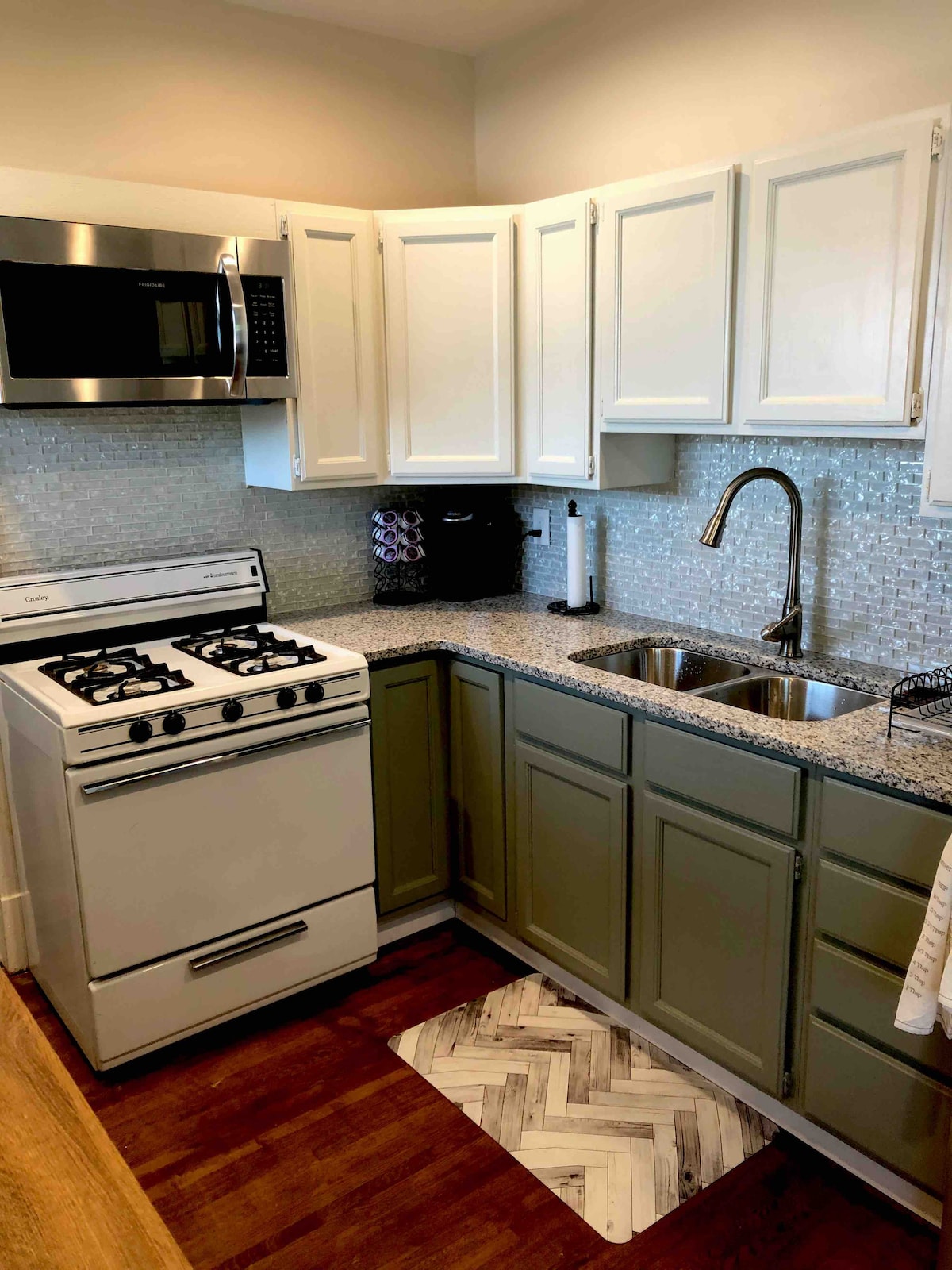 To na novo prenovljeno stanovanje 1BR vam bo omogočilo, da se boste med bivanjem sprostili. Uživajte v kuhinji in spaju v kopalnici. Po dolgem dnevu si privoščite glavo v udobni kraljevski postelji ali pa uživajte v kratki vožnji v nenavadno vasico, kjer lahko jeste ali koktajl! Naše stanovanje je enosobno, manjše zasebno stanovanje v stavbi s 5 enotami. Stavba se nahaja na glavni ulici, kjer je spalnica obrnjena proti cesti. Vključili smo zatemnjene zavese in zvočni stroj.
