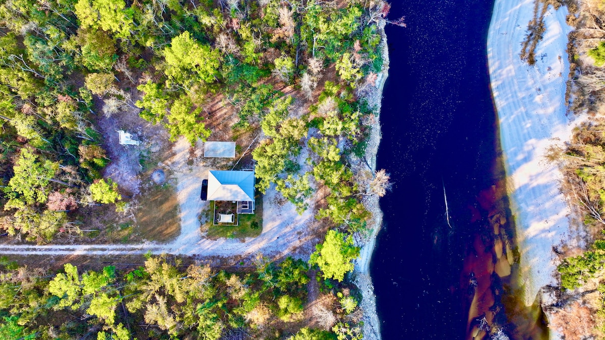 Kick back and relax in this calm, stylish cabin. This part of the river has the most relaxing water movement that can be heard from the cabin with the doors open. Views are exceptional, a perfect little retreat in the quaint historic town of White Springs. 1/2 mile from Stephen Foster State Park. Canoe and kayak outfitters 1/4 mile away with launch and pickup available. Great fishing year round and bait shop 1/4 mile away. Perfect for a romantic getaway, Anniversaries, Birthdays.