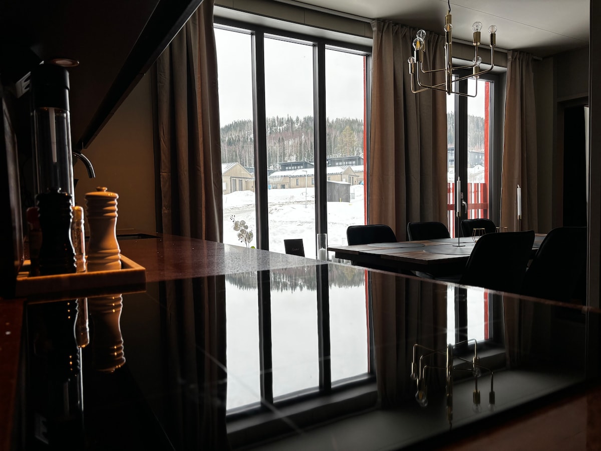 Dobrodošli v sodobnem stanovanju Backgläntan 8 v Kungsbergetu, kjer boste našli vse, kar potrebujete. Uživajte v savni, etanolskem kaminu, popolnoma opremljeni kuhinji in opremljeni strešni terasi z žarom in odličnimi razgledi skozi vse leto. Dve spalnici s skupno 6 ležišči: ena z zakonsko posteljo, druga s pogradom in raztegljivim kavčem za dve osebi v dnevni sobi. Stanovanje ima optični internet in veliko iger za vso družino. Oprema, kot so aparat za gaziranje vode, aparat za kavo, cvrtnik in pekač za vaflje. Polnilnik za električne avtomobile v bližini. V prenočišču ni dovoljeno kajenje in živali niso dovoljene.