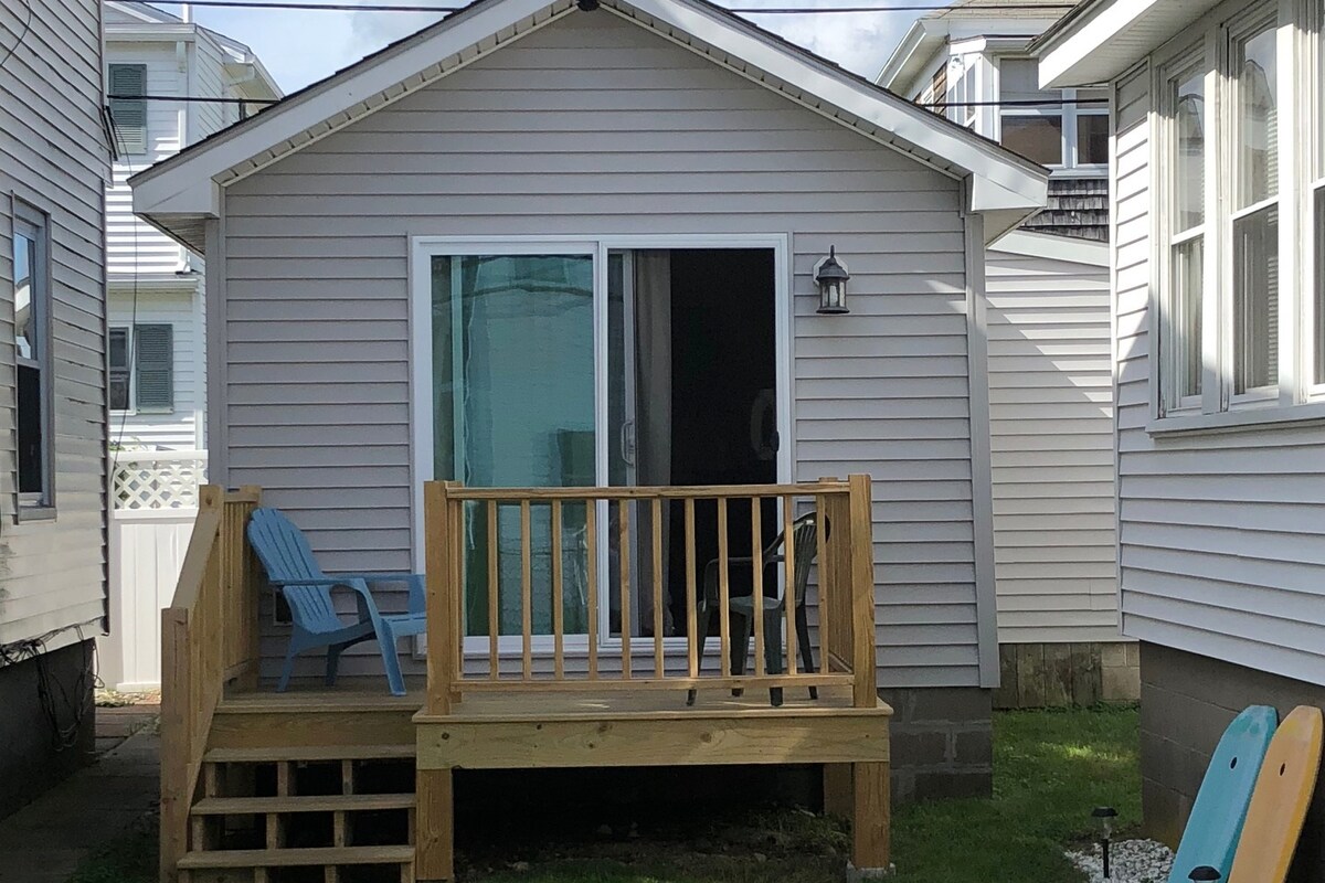 Cute studio beach cottage with complete kitchen, full bath, and full size bed. Everything is new and updated. Perfect for a relaxing couples vacation. Two minute walk from the beach. Parking for one vehicle in front of house with table and grill outside. Hampton Beach is a great area to visit. Fantastic beach and adjacent boardwalk with restaurants and entertainment. We are on the north end of the main beach; quiet area but only 10 minute walk to the Ballroom Casino. No pets.
