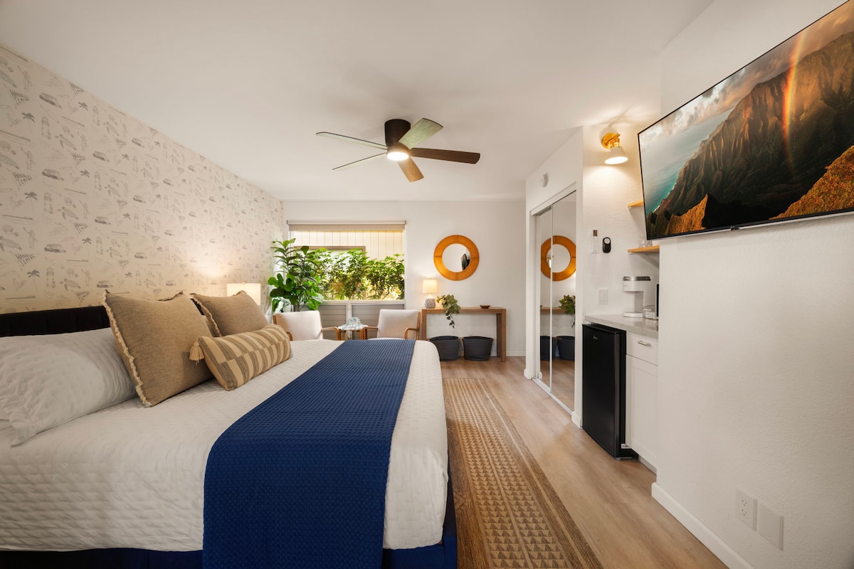 Sodoben popolnoma prenovljen 1+1 z klimatsko napravo. Ta umik ponuja sodoben bivalni prostor s sedeži v prvi vrsti do čarobne plaže Anini in svetle hiše. Sprostite se v udobnem bivanju ali sedežu v lanaiju in si oglejte kite in delfine, ki potekajo mimo. V nekaj minutah od zaliva Hanalei, svetilnika Kilauea, čudovitih restavracij, pohodništva, deskanja, golfa in še veliko več. nazaj in se sprostite v tem mirnem, elegantnem prostoru. Sealodge C5