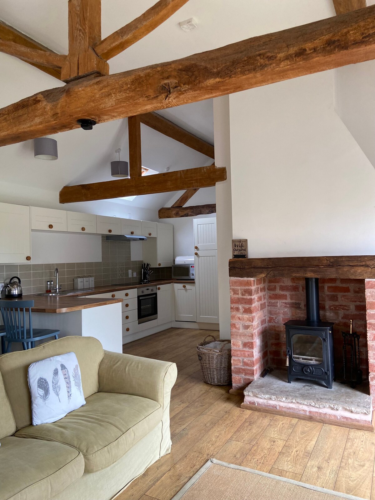 Udobno in čudovito prenovljeno predelano predelano stanovanje. Nahaja se na čudovitem podeželju Worcestershira s čudovitim razgledom. Mirna namestitev se nahaja zgoraj v skednju, ki meji na lastniško hiško na deželi iz 17. stoletja in je popolnoma samostojna. Objekti vključujejo: Izjemno hiter Wi-Fi, Kompaktna kuhinja, štedilnik, mikrovalovna pečica, grelnik vode, hladilnik in opekač kruha. Likalnik in likalna deska Sušilnik za lase - shranjen v spalnici. Ločite stranišče z umivalnikom. Prha. Ena spalnica z veliko zakonsko posteljo Terensko parkiranje