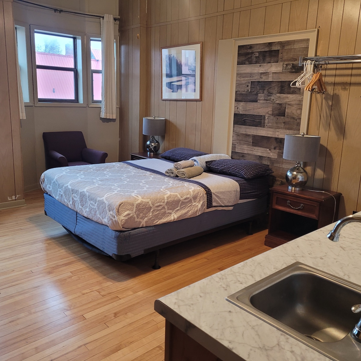 Ta studio je popolnoma svež in nov, nahaja se v zahodnem Hancocku. Parkiranje je zlahka dostopno z vhodom v pritličje. Center Hancocka in Houghtona sta le nekaj minut stran. Nahaja se v bližini plaže Hancock. Če niste avtodom, uživajte v dnevnih dejavnostih, pridite in bivajte z vsemi razkošji doma. Kuhinja garsonjere in zakonska postelja. Pravkar smo dodali grelec/ klimatsko napravo, ki jo lahko prilagodi gost. Povratne informacije so bile odlične.