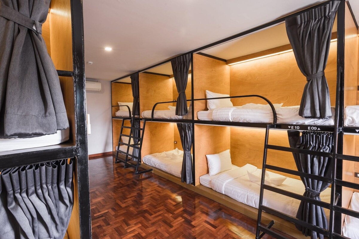 Postelja v 8-posteljni mešani skupni spalnici v hostlu Khun Luang