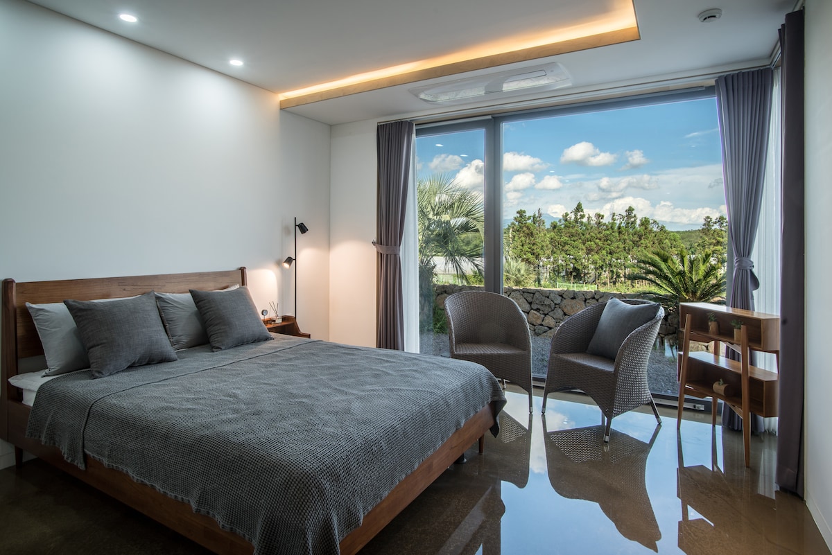 To je zasebni prostor s sodobnim dizajnom, prostor, kjer lahko uživate v kopeli na prostem v štirih letnih časih, Gotjawal in Hallasan. SOBA in dnevna SOBA sta zasnovani z oknom (German Rehau), tako da lahko uživate v pokrajini in morju iz vseh prostorov. SOBA je zasnovana neodvisno od ločenega prostora in je priporočljiva za vse družine, pare in prijatelje. -Main tourist attractions in the west: Gapado Dock, Hyeopjae Beach, Camellia Hill, Manor Blanc, Osulloc, Sanyang Bigong Cape, Firefly Village, Sagye Beach, New Windmill Coastal Road, Songaksan Mountain, Sanbangsan Mountain, Yongmeori Beach, Marado (Gapado) Dock, Runapol, Automobile Museum, Figure Museum, Thinking Garden, Soingook Theme Park, Glass Museum, etc. - Dovoz in parkirišče: dovoz in cesta sta široka, ker gre za stanovanjski kompleks z okrožno ureditvijo. V nastanitvi je veliko parkirno mesto, tako da lahko udobno parkirate. - V 10-15 minutah so na voljo 4 tržnice, tako da jih lahko priročno uporabljate.