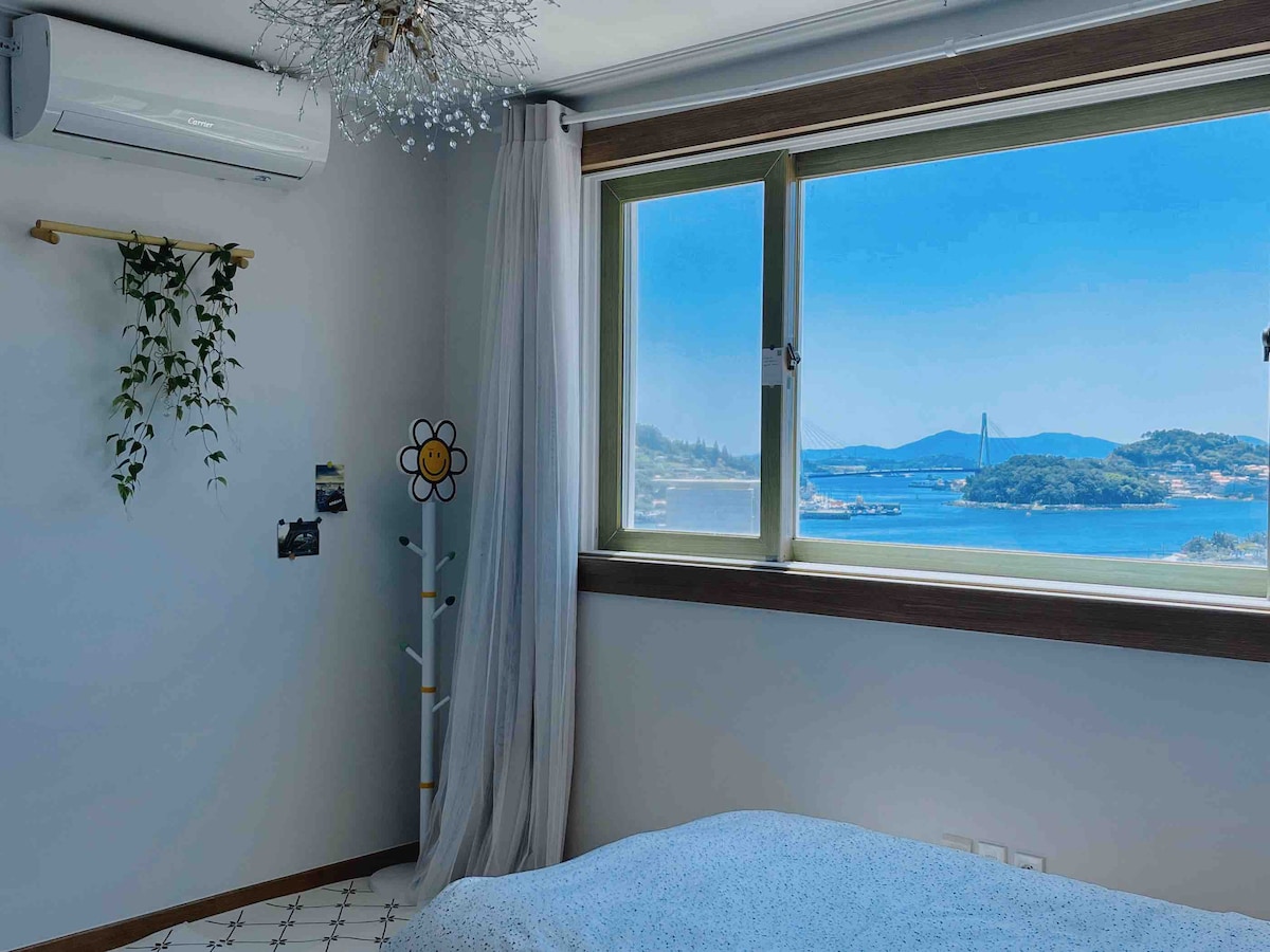 Gre za novo stavbo s pogledom na ocean in pogledom na most Dolsan, zato je prostorna in čista.🌊🩵 Je zelo blizu glavnih znamenitosti in je odličen kraj za prijatelje in ljubitelje ali družine z 2-4 osebami, ki bivajo skupaj. To je dvostanovanjska zgradba z dnevno sobo, kuhinjo, kopalnico in spalnico v prvem nadstropju (ločen prostor od dnevne sobe, zakonska postelja), v drugem nadstropju pa je vzmetnica, ki lahko udobno spi dve osebi. Iz vseh prostorov lahko uživate v nočnem pogledu na morje in ponoči Yeosu s pogledom na jutranji sončni vzhod in morje pred Namhaejem. V drugem nadstropju je nameščena tudi toplotna žica, zato vam ni treba skrbeti za mraz pozimi. Poleti je nameščena sistemska klimatska naprava, tako da se lahko ohladite in uživate v počitnicah. (1 dnevna soba, 1 spalnica, skupaj 2) Zagotavlja Disney Plus OT Od postaje Yeosu Expo je oddaljen 1 minuto vožnje z avtomobilom. Do pomorskih žičnic, Big O Show, Minam Cruise Fireworks Show, Yeosu Romantic Pocha Street, Odongdo Island, Aqua Planet in Marine Park se lahko sprehodite. V Yeosuju lahko živite tudi en mesec, zato se obrnite na nas. 🏡❣️