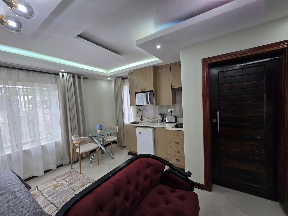 A spacious, cozy, elegant and naturally well-lit bedsitter with own bathroom, fully-equipped kitchen and own entrance. It is in the guest wing first floor of a family house in Highlands, a peaceful leafy suburb in Harare. The Doehan Bedsitter is the ideal home away from home to retreat from city activity, make home-cooked meals, watch free Netflix or even do home office with the best wifi in Zimbabwe.