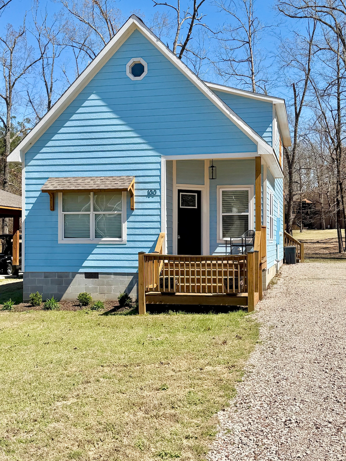 Quiet, Private, Peaceful....Our cabin sits on a small hill and is in a great neighborhood of friendly families. It is located just minutes from Grand Harbor Marina, State Park Marina and Aqua Marina. Plenty of nature to come and enjoy!! We have a fireplace for cozy nights, free wifi, full kitchen, washer/dryer. Keurig for coffee lovers. Wrap around porch for sitting and relaxing after a long day on the water. Private Hot tub for relaxing(Must Sign Waiver). Close to area restaurants and stores.