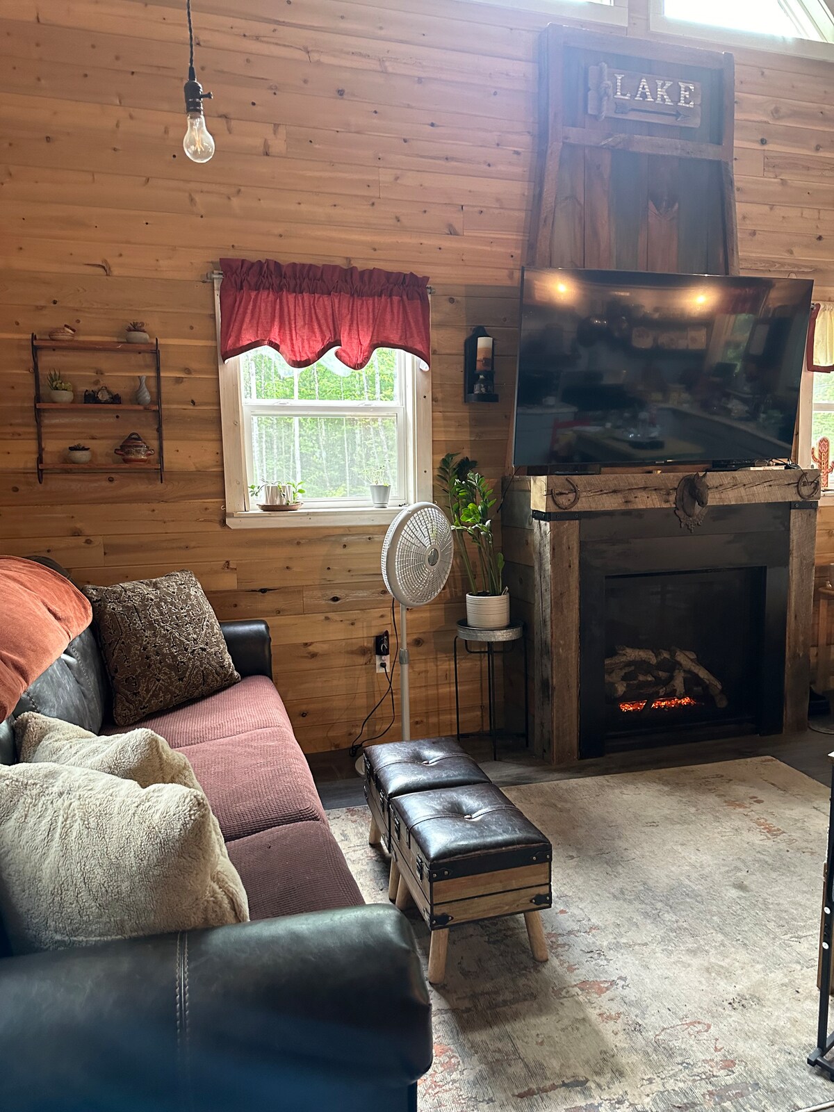 Cozy Tiny Home with Stunning Views Escape the hustle and bustle in this charming tiny home with serene field views. Enjoy the tranquility of nature while still being conveniently located just minutes from Bangor's airport and town center. Relax and unwind in the private Jacuzzi with stunning views of the endless field or gather around the fire pit for a cozy evening under the stars. The projector screen offers endless entertainment options, perfect for movie nights or gaming.