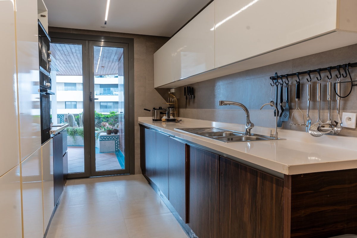 ✨ Elegantno zatočišče v osrčju Casablance, nasproti železniške postaje Casa Port. Svetlo in prostorno stanovanje spovršino 83m2 nudi vse udobje, ki ga potrebujete za popolno bivanje, in lahko udobno sprejme do 5 gostov. Vključuje 2 mirni spalnici s pogledom na vrt, dnevno sobo v domačem kinu (75-palčni televizor), balkon s pogledom na mošejo Hassan II, popolnoma opremljeno kuhinjo in namenski delovni prostor. Idealno za sproščujoče trenutke, ne glede na to, ali gre za konec tedna ali daljše bivanje 🌇🌿