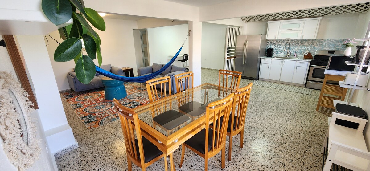 Prebudite se ob razgledu na ocean in se vsak dan sprostite ob pomirjujočem zvoku valov! Ta košček raja, ki je le nekaj korakov stran od plaže, je sestavljen iz prenočišča z 2 posteljama /2 kopalnicama in 1 posteljnega /1 kopalniškega vrtnega stanovanja, ki nudi popolno zasebnost za širše družine. To prenočišče se nahaja v očarljivi soseski ob plaži in je v središču mesta za raziskovanje otoka. Popolnoma klimatiziran, hiter internet in le nekaj minut stran od fantastičnih restavracij, trgovin in pustolovščin. Doživite Portoriko kot domačin!
