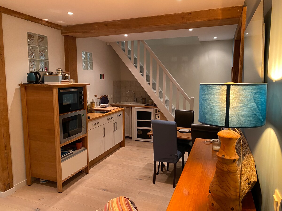 Venez vous ressourcer dans ce bel appartement de 50m2 totalement conçu en open-Space, salle de bain ouverte sur pièce principale. Profitez éventuellement d une coupe de champagne dans un BAIN A REMOUS,et endormez vous sous un ciel étoilé.. Profitez également de la terrasse pour un petit bol d air le soir, ou pour prendre votre petit déjeuner face a la nature.. Tout pour se retrouver en amoureux ou en solo le temps d’une soirée paisible. n hésitez pas a nous contacter pour des demandes diverses