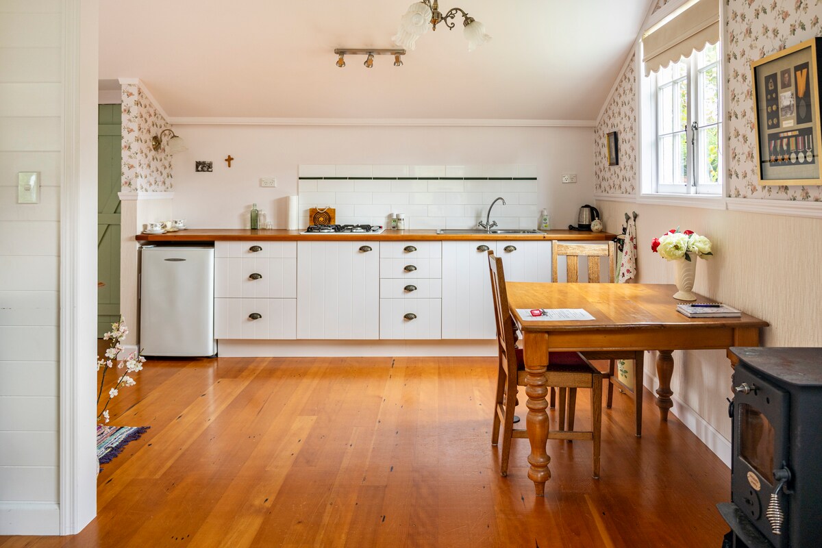 Okusno prenovljena 1 spalnica, popolnoma samostojna viktorijanska hiška na deželi, ki se nahaja na 3,4 hektarja mirnega podeželskega zemljišča, podobnega parku. Namestitev se naslanja na reko Kauaeranga, čudovito čisto reko, ki teče z idilično plavalno jamo na koncu posesti. Veličastna sprehajalna pot Pinnacles se nahaja na koncu ceste. Koča je oddaljena le 5 km od središča mesta Temza; vse je v bližini, vključno s priljubljeno železniško progo Hauraki, ki je od koče Bakehouse oddaljena 3,5 km.