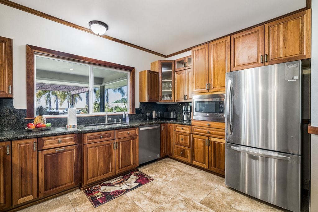 Želite pripeljati celotno ekipo ali dve družini? To vetrovno prenočišče 4BR, 3BA Kona je zgrajeno za zabavo in prilagodljivost. Dve nadstropji pomenita dovolj prostora za druženje ali tišino. Z dvema kuhinjama, dvema dnevnima sobama, klimatsko napravo, pametnimi televizorji in pralnico v zaprtih prostorih imajo vsi dovolj prostora za sprostitev. Uživajte v skoraj 180-stopinjskem pogledu na zaliv Kona, sprostite se na vetrovnem lanaisu, prižgite žar ali plavajte v bazenu. Na kraju samem izberite svež mango in zvezdno sadje. Samo 5 minut do mesta Kona - vaš popoln oddih na otoku vas čaka.