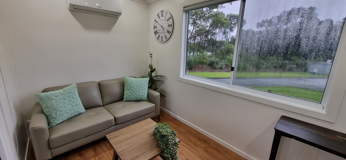 Ste si kdaj želeli bivati v stabilni hiši, vendar z vzdušjem koče, mirom kilometre daleč, teniškim igriščem in zasebnim dostopom do reke - našli ste ga! Naša predelana nekdanja hlev za konje je majhna, vendar mogočna, umeščena med urejene površine, ki so del 100 hektarjev čiste avstralske kmetije in grmovje. Imeli boste dostop do zasebnega teniškega igrišča, plavalnega in ribolovnega mesta ter zasebnega vhoda. To je vrhunsko razkošje mini-hiške, ki je dovolj oddaljeno, da se lahko počutite stran od vsega. Obvezno bivanje!
