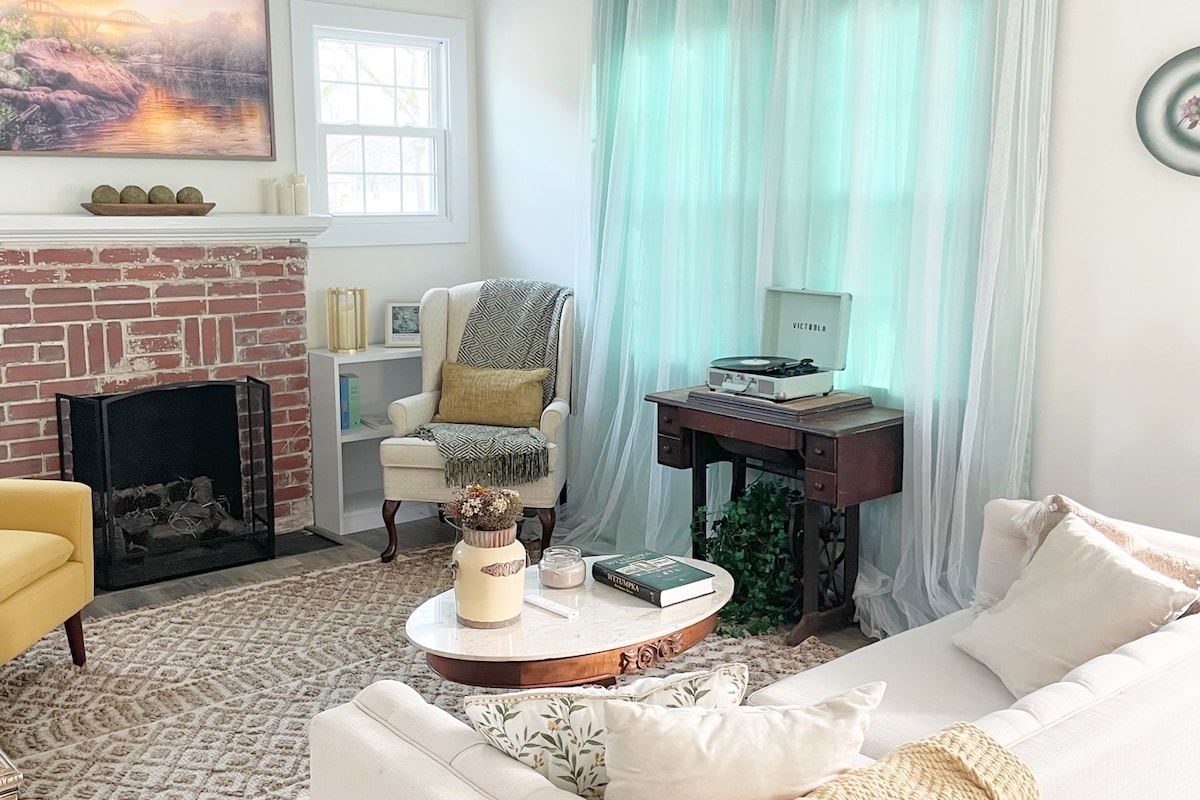 Looking for the perfect retreat or weekend getaway? We’ve got you! Home features a large covered front porch. Living room has an oversized daybed with pull out trundle to accommodate two. Home is decorated with unique one-of-a-kind art! Not to mention you’ll be on the same street as not one, but two of the homes featured on the HGTV Hometown Takeover! Want to explore downtown, it’s an easy walk or 3-minute drive to the downtown bridge.