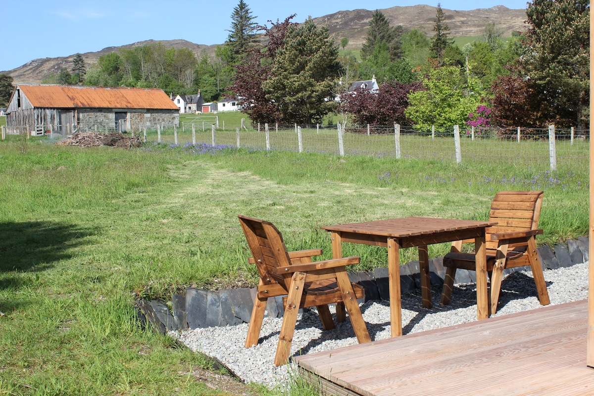 Beautifully appointed modern pod , boasting full size shower and larger than your usual pod layout. Only 15 minutes drive to fort william where you will find lots to do including Ben nevis , jacobite steam train , nevis range and much more . Alternatively 10minutes away from Glencoe where you will find walking for all abilities with stunning views . Set just up from the shores of loch linnhe you have panoramic views of the loch and surrounding mountains .Decking area has gate .