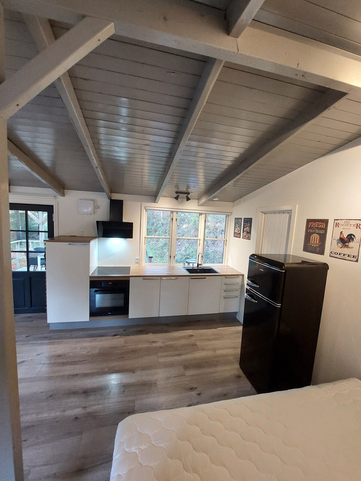 Udobna hiška na deželi 42 m2. Nahaja se na čudoviti gozdni parceli v bližini fjorda. Velika drevesa zagotavljajo zavetje in senco. Če želite uživati v soncu, je popolno na dvignjeni terasi.