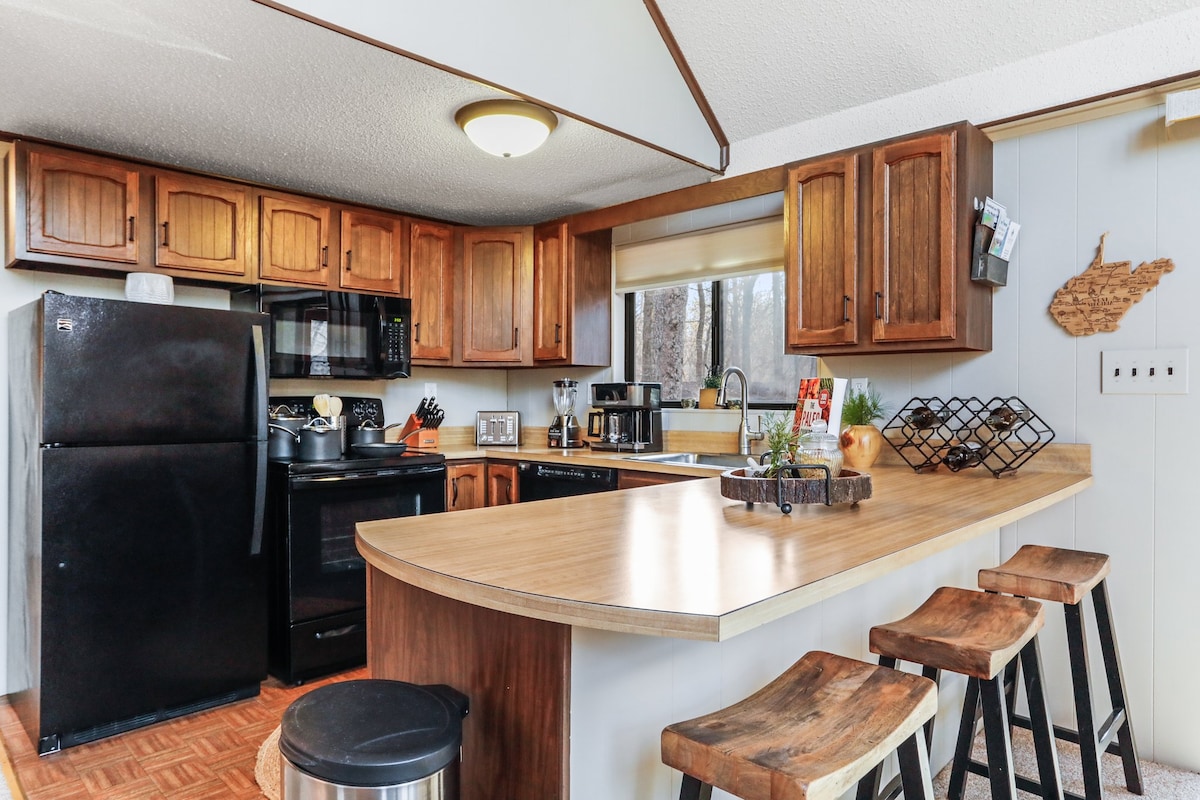 Kick back and relax in this peaceful, stylish chalet at The Woods community in wild and wonderful West Virginia. The 2-acre property backs up to the 23,000-acre Sleepy Creek State Wildlife Area, a hikers dream. The Woods offers 2 golf courses, indoor and outdoor pools, indoor hot tub, tennis, exercise gym and more. The Sports and Spa center is within walking distance from the chalet for self-care pampering. The Clubhouse Grille and Pub is a great option for dine in and carry out. Enjoy!