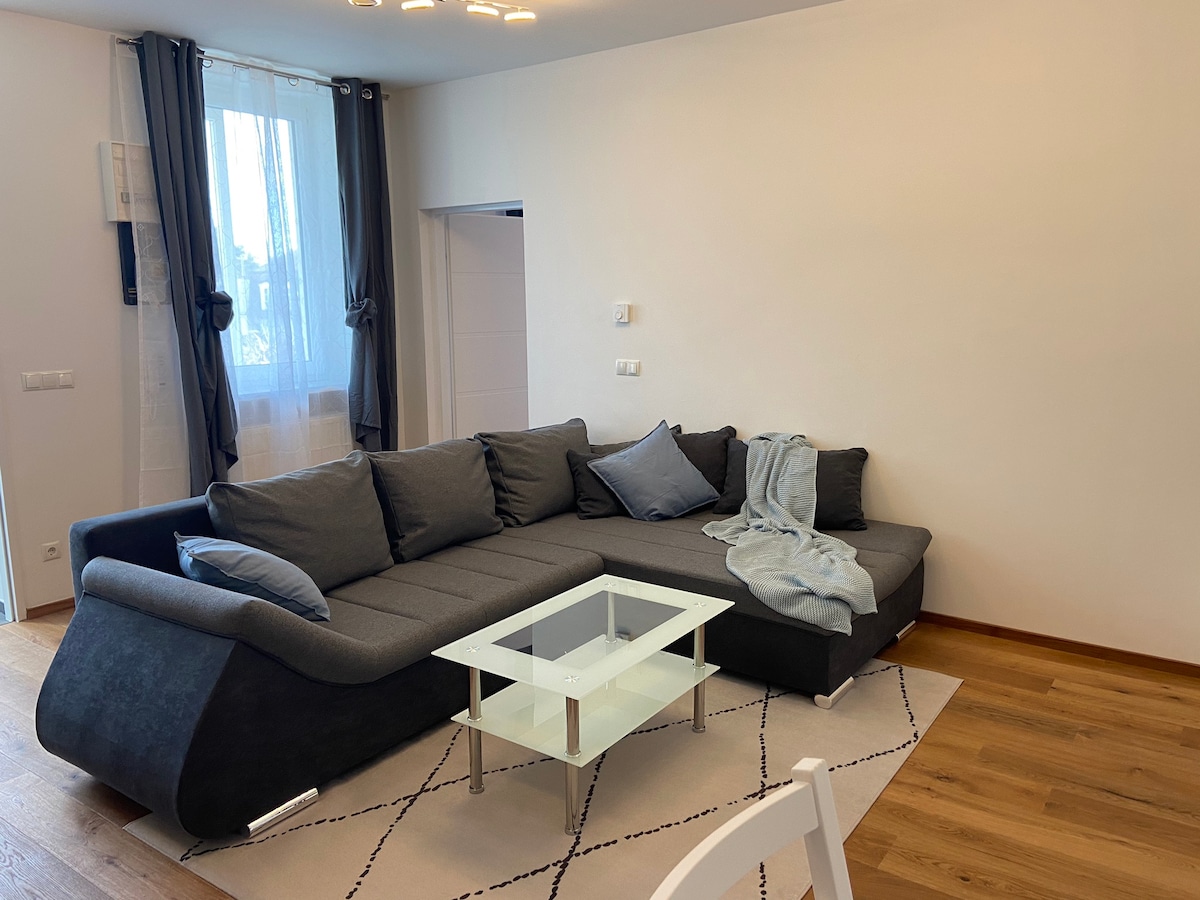 Eleganten in velik apartma, ki se nahaja v mirnem predelu v bližini centra mesta. Dve spalnici, dve ločeni stranišči, prostorna kopalnica, prostorna kuhinja in dnevna soba z orielom. Dobro je povezan z javnim prevozom in podzemno parkirišče je na voljo (ni primerno za velika vozila). Centralna nakupovalna postaja in več parkov so le nekaj sprehodov stran. Uživajte brezskrbno bivanje v mestu Baden z odličnimi prometnimi povezavami do osrednjega Dunaja.